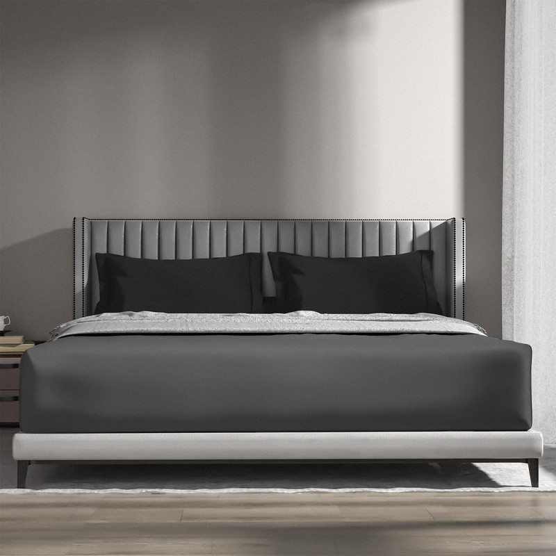 wyewye King Size Fitted Sheets, Deep Grey, 150x200 cm with 40 cm Super Deep P...