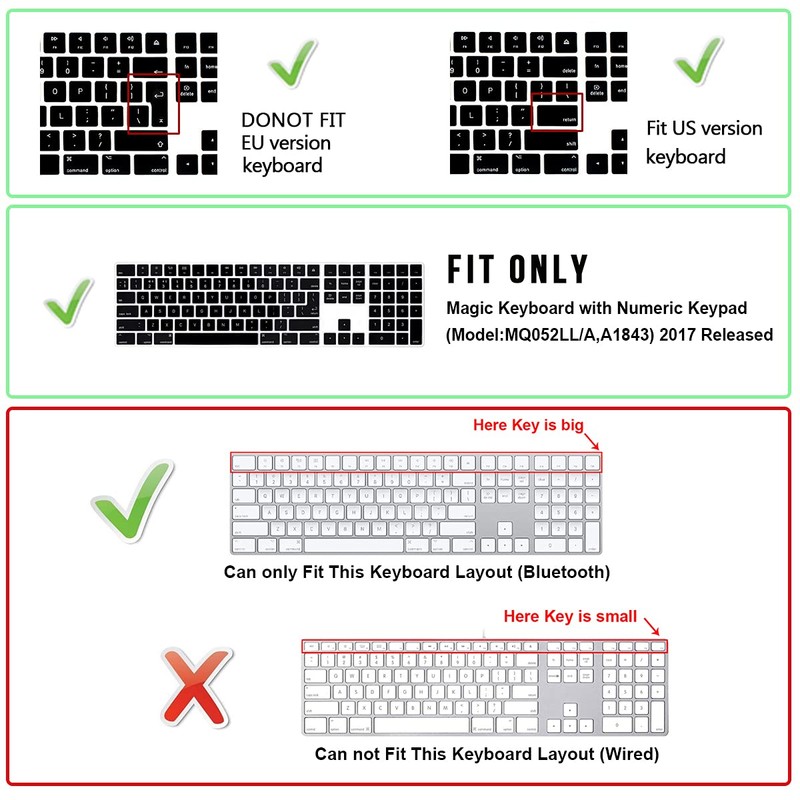 - Compatible ONLY with full size Magic Keyboard with Numeric Keypad MQ052LL/A and A1843 ( Released 2017)US Layout