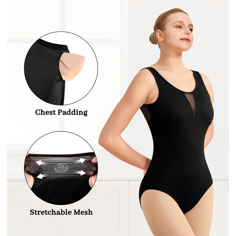 - Sheer Mesh Design: This black women’s leotard features sheer mesh details, adding breathability and style. The mesh gives the leotard a light, sophisticated look that’s ideal for both performances and practice.