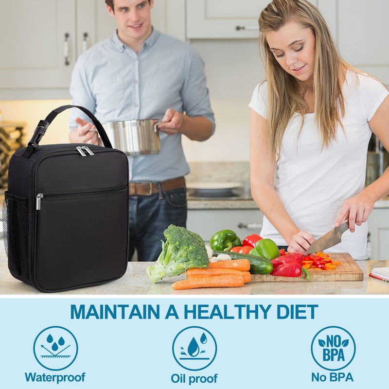 Wylhxyqq Lunch Bag Portable Lunch Box for Women, Men, Kids and Students, Travel, Picnic, School (Black)