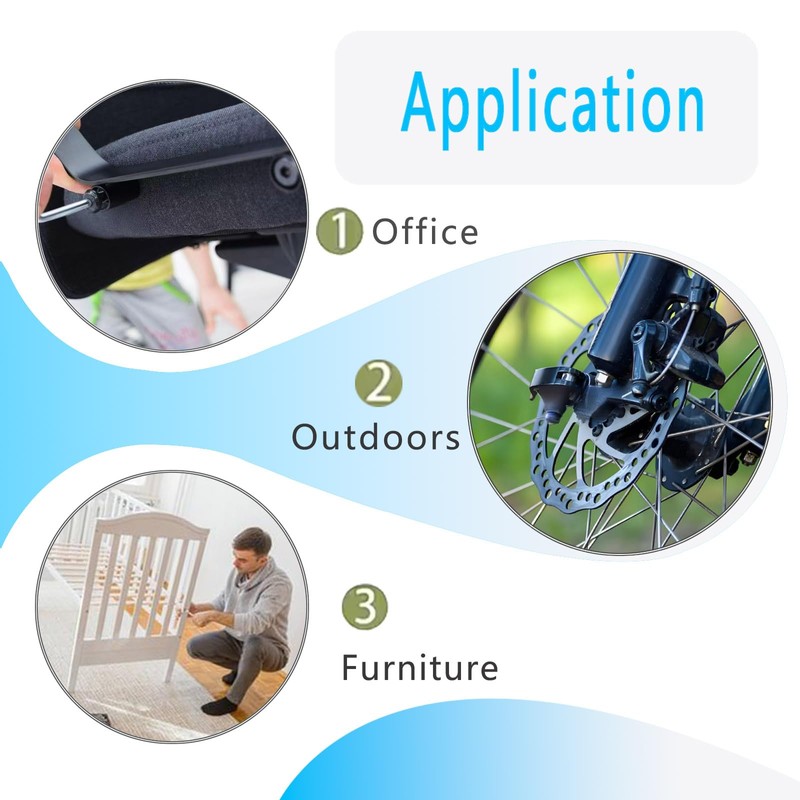 - WIDE RANGE OF APPLICATIONS : 10 Pcs Per Set with 1 Hex Spanner. Meet the daily needs of furniture assembly (crib, beds, tables, cabinets, chairs, etc.), woodworking projects (joining wood, boards, workbench, kitchen worktops), office appliances
