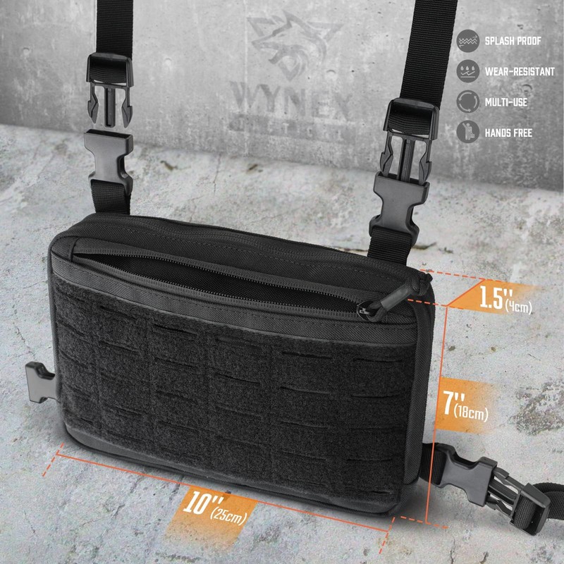WYNEX Laser Cut Design Tactical Chest Bag, Molle Chest Bag, Utility Recon Kit Bag, Tactical Combat Chest Pack, Airsoft Front Chest Pocket with Patch, black