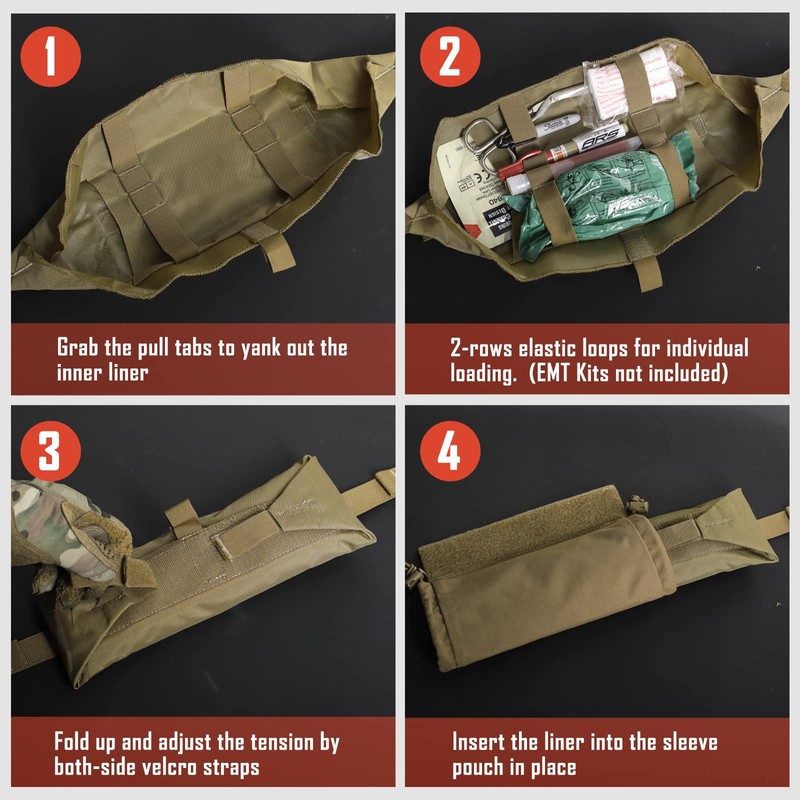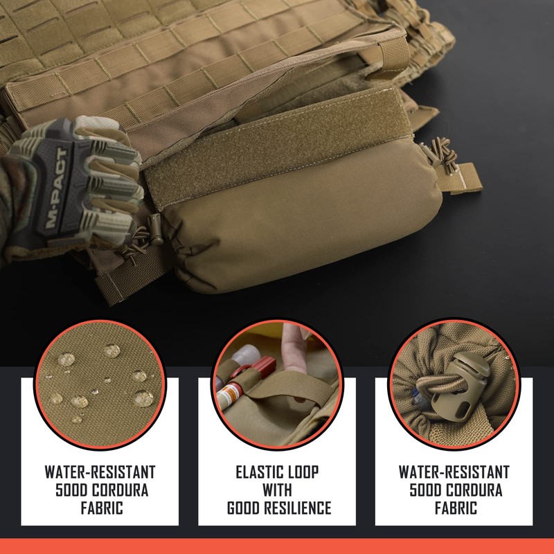 - LIGHTWEIGHT LOGISTICS: EMT drop pouch is made with 500D nylon fabric for waterproof and lightweight, and won't enlarge much loading to your plate carrier. Outer Pouch: 9.8"L x 7"H / 24.9cm x12cm.