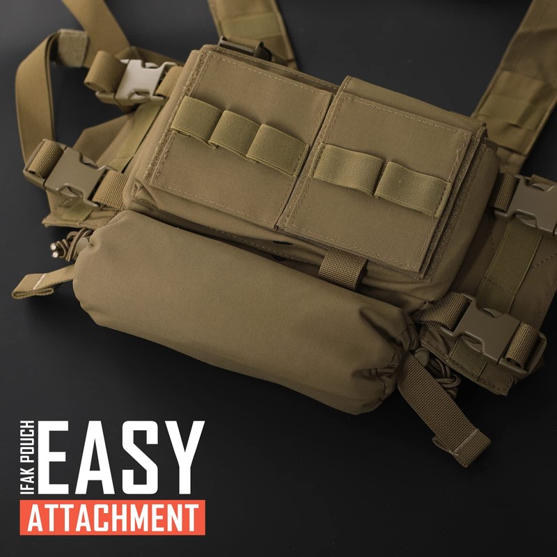 - AMBIDEXTROUS ACCESS: Medical dump pouch has an Open-Ended Ambidextrous design simply grab the left or right deployment pull tab, yank out the insert to gain access to IFAK contents, and go to work. Both sides have an adjustable shock cord retention systems for content storage. All can be done with one hand or a single finger from the left or right side.
