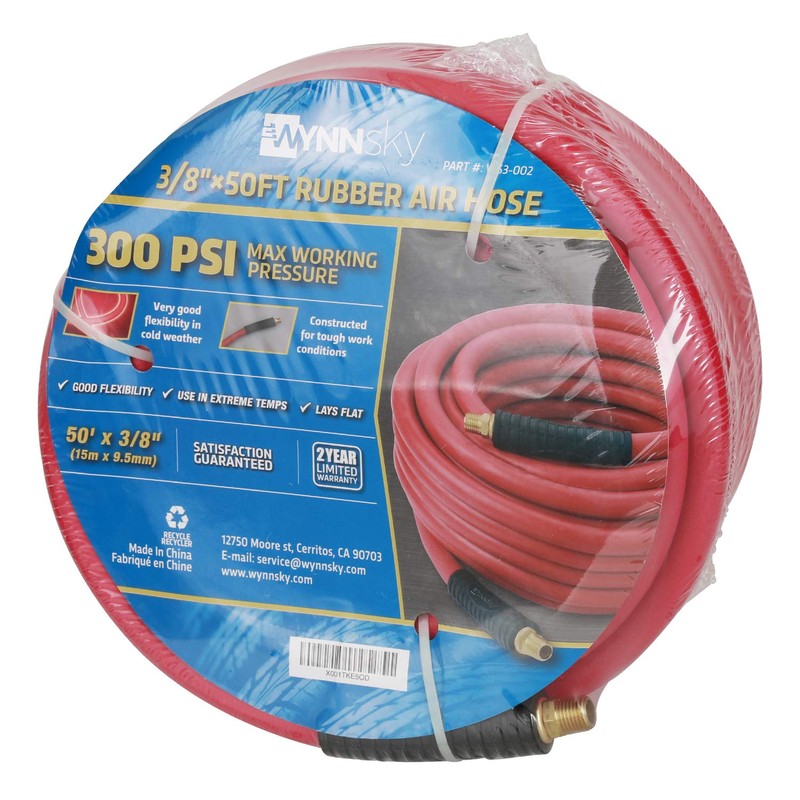 WYNNsky Air Compressor Hose, EPDM Rubber Material, Oil Resistance, Ozone Resistance, 3/8 Inch × 50 Feet, Bend Restrictors, 1/4 Inch Male NPT Threads Size Air Tools Fittings
