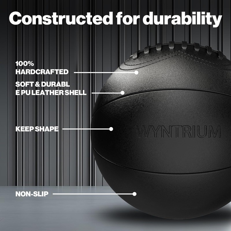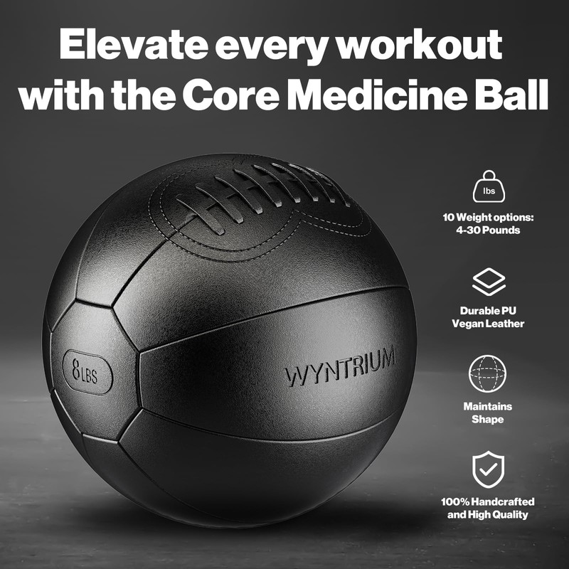 WYNTRIUM Core Weighted Medicine Ball 8lbs, Soft Touch Vegan Leather with Sturdy Grip for Strength Training, Recovery,Balance Exercises and Full-Body Workouts Medicine Balls for Exercise,8LBS,Black