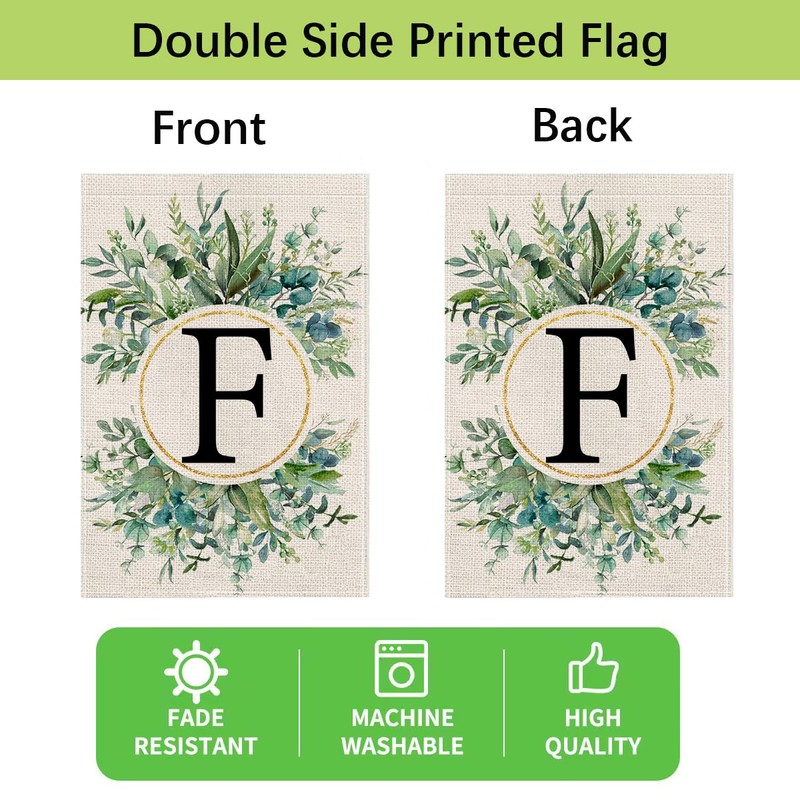 wyooxoo Monogram Letter F Floral Garden Flag 12x18 Inch Double Sided For Outside Small Burlap Family Last Name Initial Outdoor Yard Flag (F)