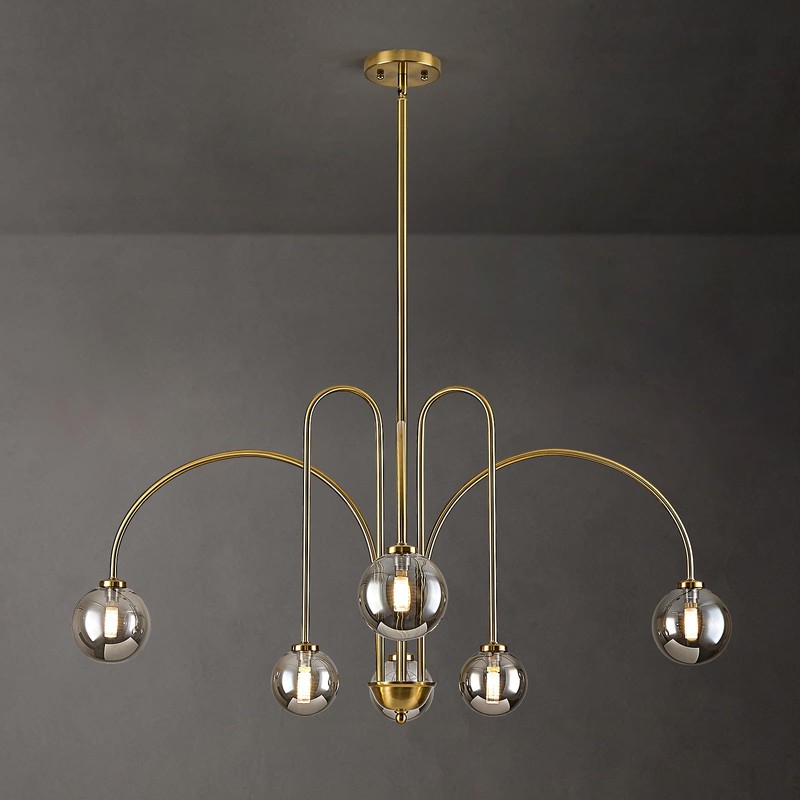 - Upgraded Quality: This globe sputnik chandelier is crafted from high-quality metal, meticulously polished and treated with brass plating, offering a luxurious texture and durability. And the selected 6 smoke grey glass shades are evenly spaced to create an elegant light effect that becomes the visual focal point of the space.