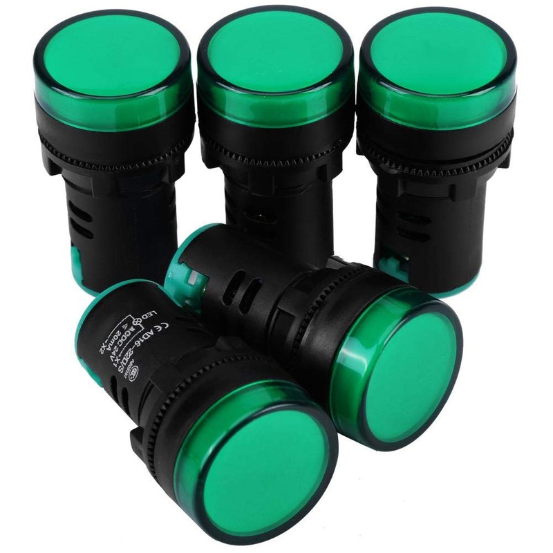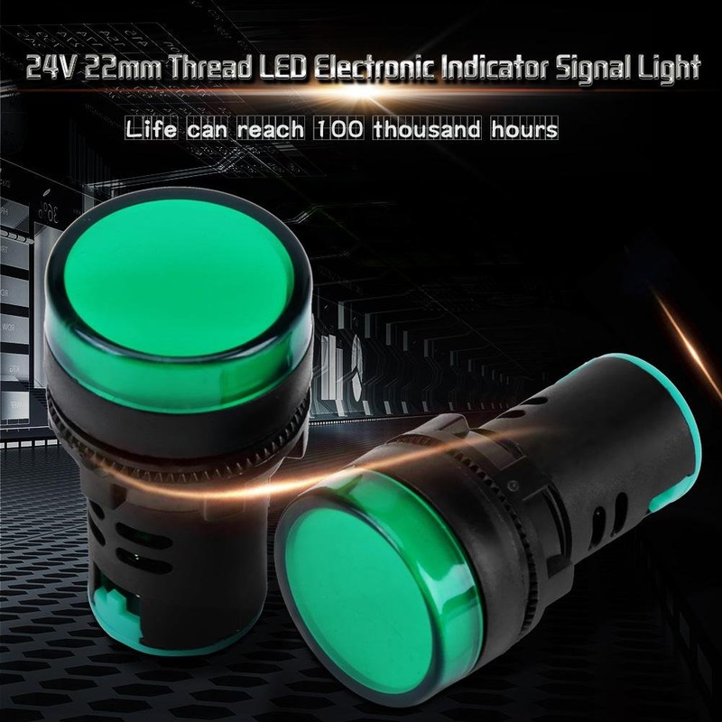 Wytino Luz de señal LED, 10Pcs AC/DC 24V 22mm Hilo LED Luz de señal indicadora electrónica(Verde)