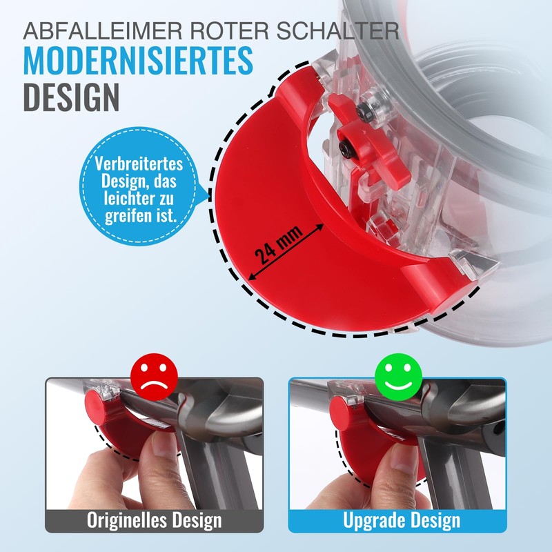 • Upgrade-Version: Unser V10 staubbeh?lter staubsauger zubeh?r wurde aufger??stet, ein ergonomisches Design im Entriegelungsgriff wird es definitiv einfacher machen, den Staubbeh?lter zu l?sen und den M??ll zu entleeren, da es die Anstrengung Ihrer Hand verringert und weniger Kraftaufwand erfordert