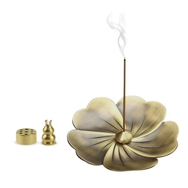 Wzdk Porta Incienso, Juego de Soportes para Incienso 4 en 1, Sostenedor de Incienso diseño Flor de Loto de Bronce, para aromaterapia, Yoga, meditación, SPA