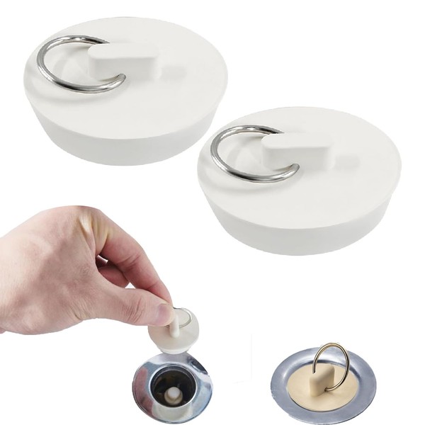 Wzenclave 2 White Rubber Sink Plugs Sink Drain Plugs with Pull Rings Universal Size Suitable for Drain Holes Replacement of 48mm-49.5mm Suitable for Kitchens bathtubs bathrooms and Laundry Rooms