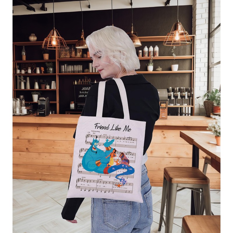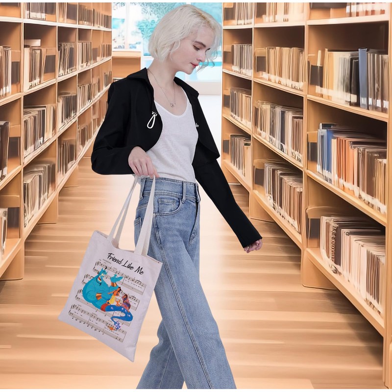 WZMPA Aladdin Magic Lamp & Genie Tote Bag Aladdin & Jasmine Princess Fans Gift Friend Like Me Magic Lamp & Genie Grocery Reusable Bag Aladdin Merch (Friend like me TG)