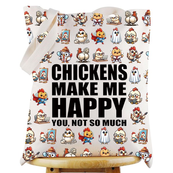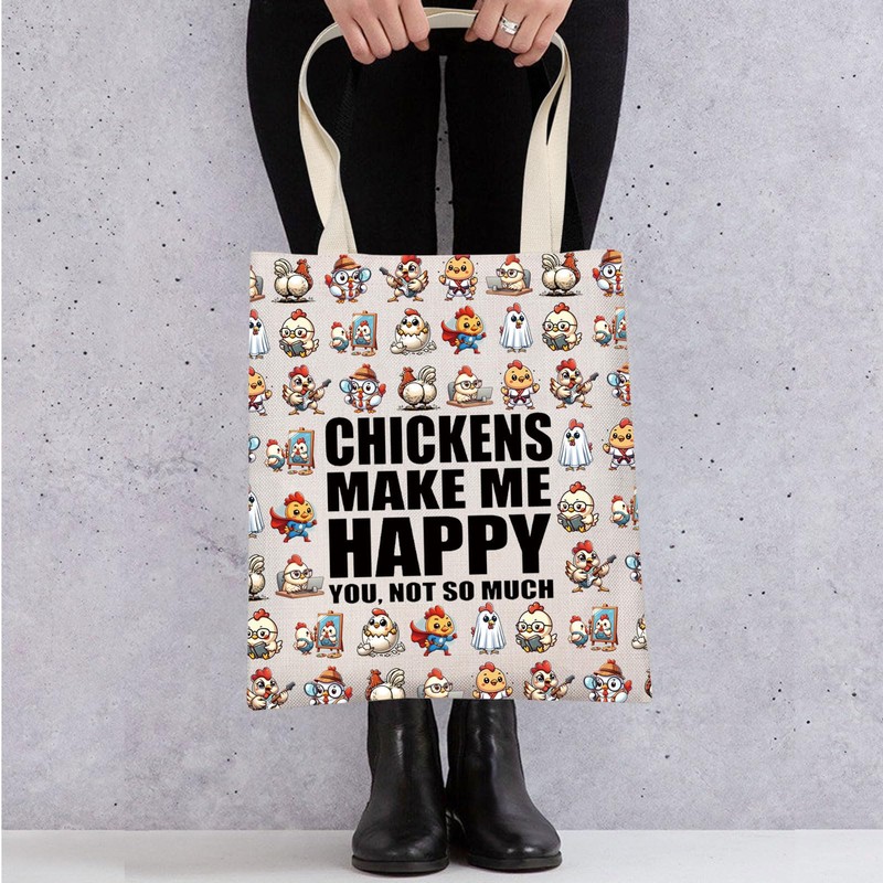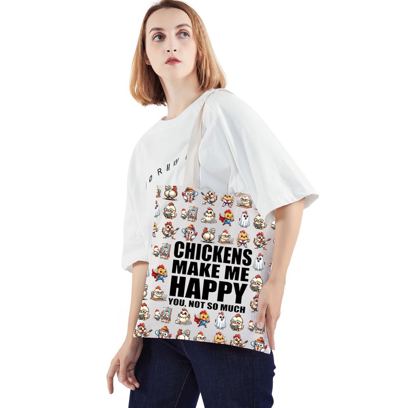 WZMPA Chicken Tote Bag Chicken Lover Gift Chickens Make Me Happy You Not So Much Shoulder Bag Chicken Mom Merchandise (Chickens Make Me TG)
