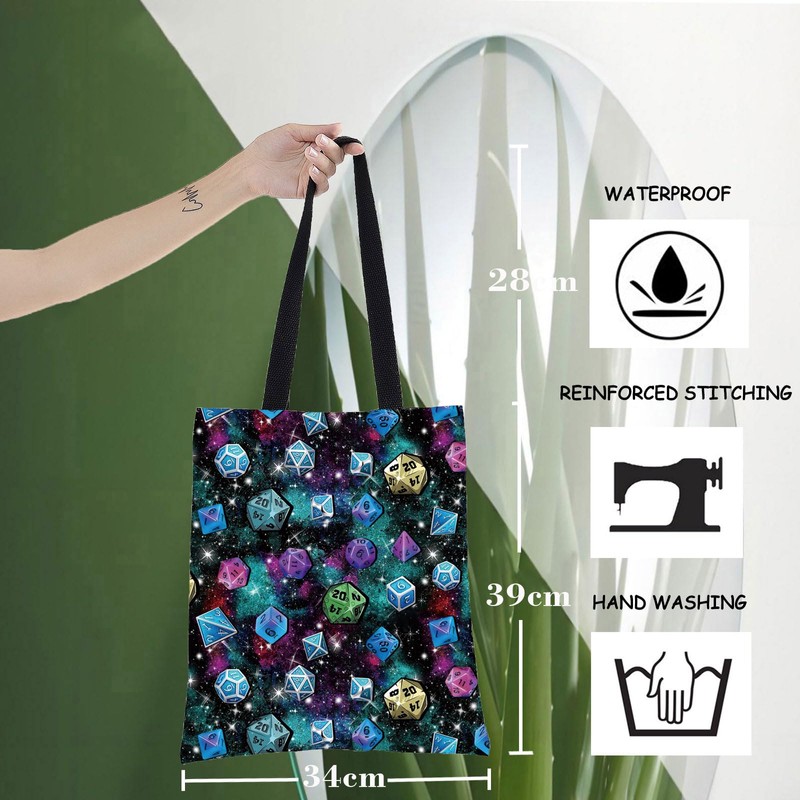 WZMPA Dungeons D20 Dice Tote Bag Dungeon Master Gifts PRG Gamer Inspired Reusable Grocery Bag Dragons Game Merchandise (Dungeons Bl TG)