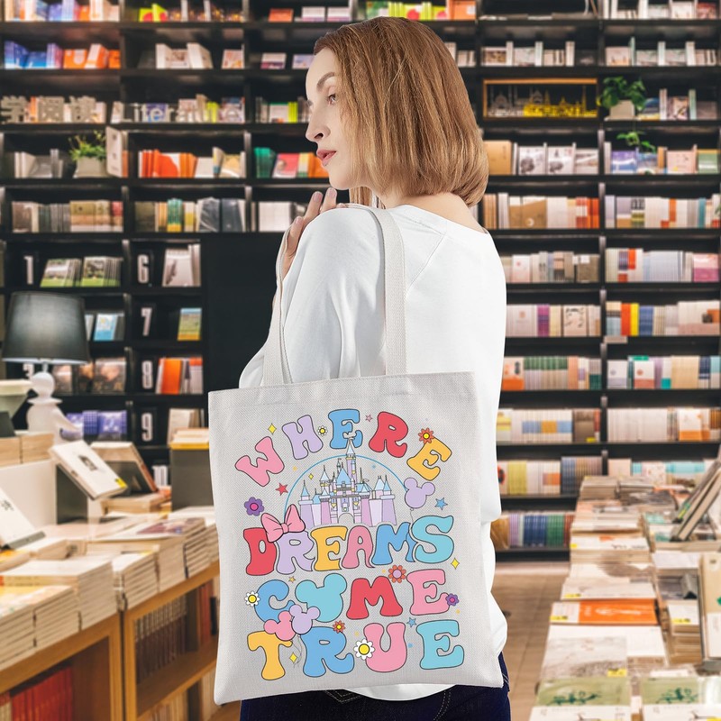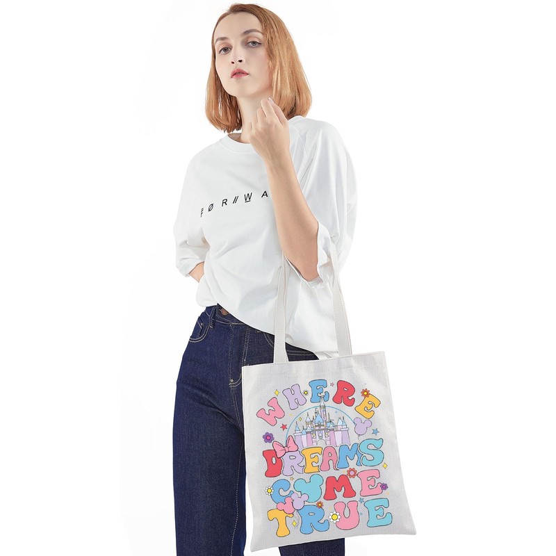 WZMPA Magic Kingdom Tote Bag Princess Castle Tale Gift Where Dreams Come True Travel Handle Bag Fairy Castle Vacation Gift (Where Dreams TG)