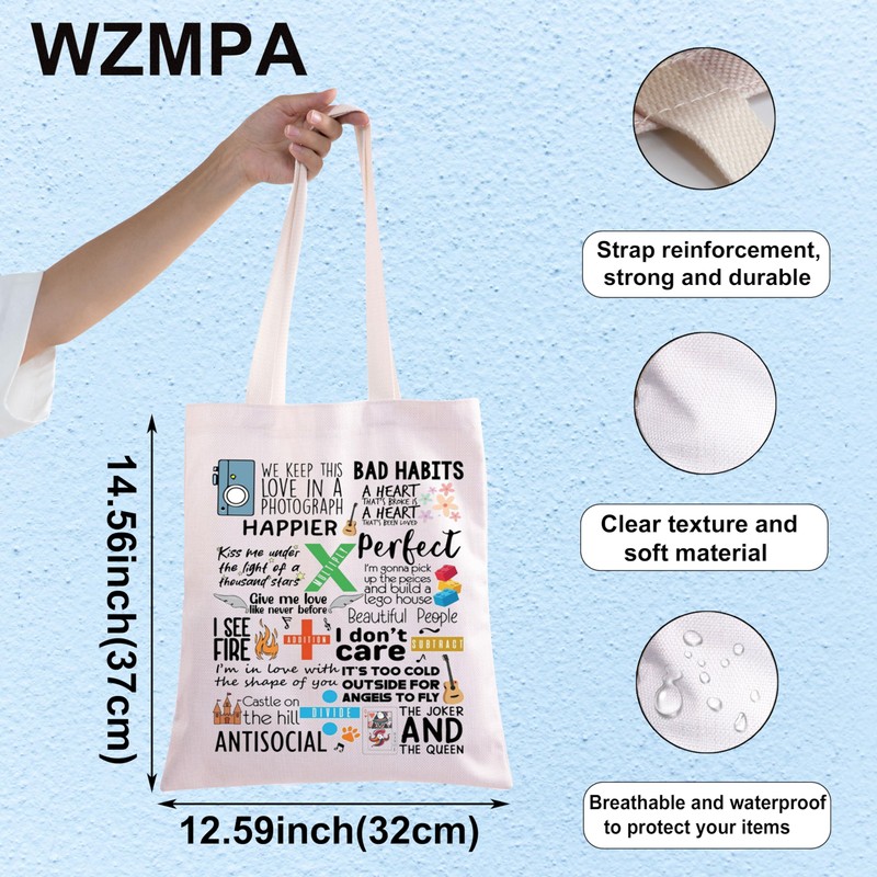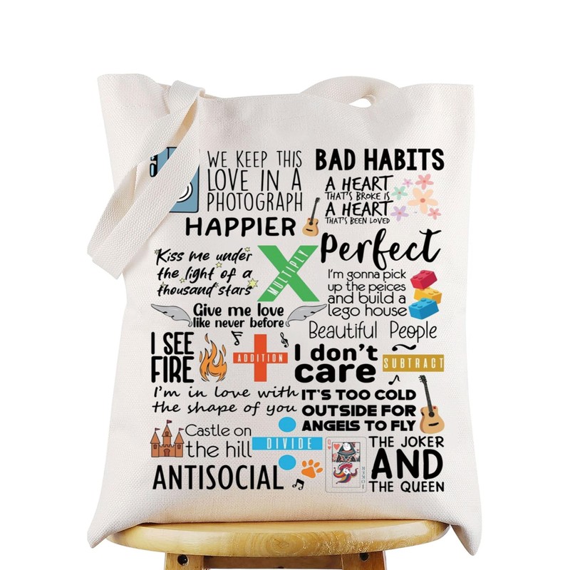 WZMPA Singer Album Tote Bag Ed Singer Fans Gift + - x ÷ Subtract Divide Multiply Grocery Bag Song Lyric Merchandise, Bad Habits Tg, Large