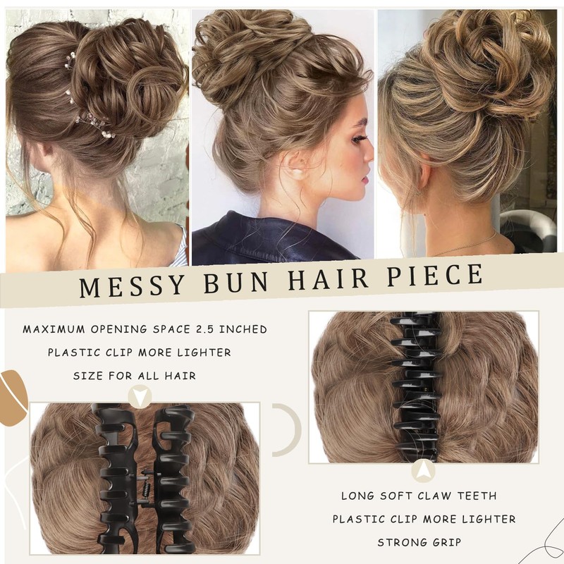 - Messy Bun:This package includes 1pcs claw clip messy bun hair piece,highlight quality synthetic fiber.providing a realistic appearance,soft and natural, with more hair and provides fuller look.when you wear it,looks gentle and temperamental