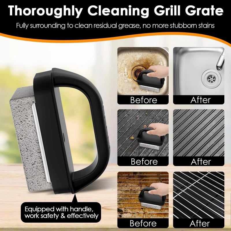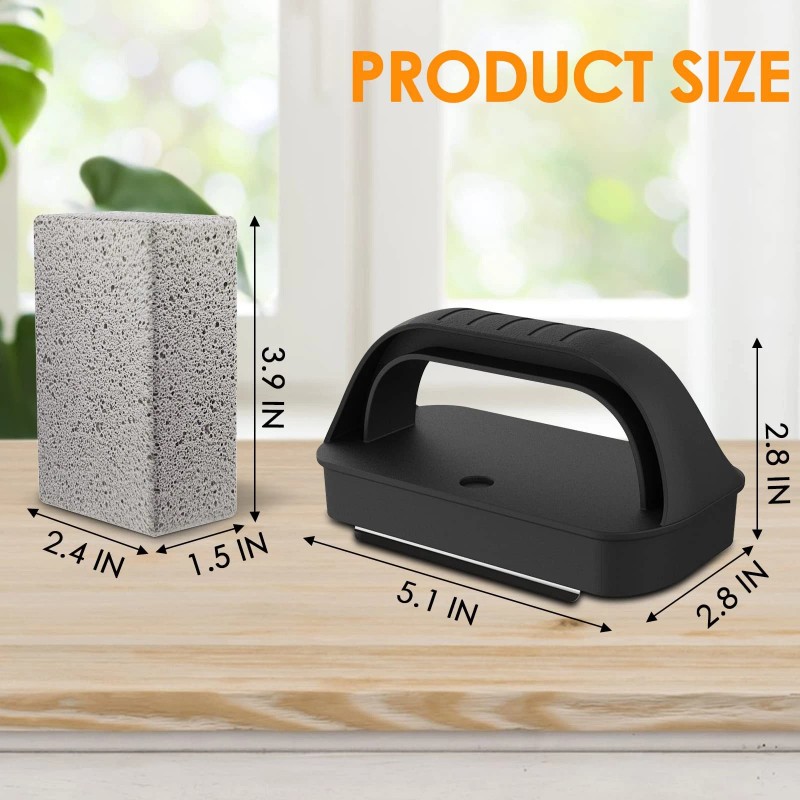 Heat Resistance Handle: Each set of grill cleaning brick contains 4 gray griddle bricks and 1 handle, easy to install and safer, protect you away from the hot grill surface during grill cleaning.