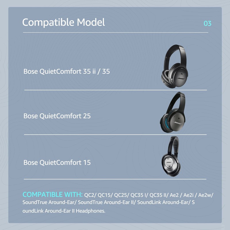 - Perfectly Compatible - Our Bose ear pads replacements perfectly match Bose headphone, like Bose QuietComfort 45 QC35 QC25 QC2 QC15, also compatible Around-Ear 2 AE2i AE2w/ SoundTrue & Bose SoundLink Series. Our Bose headphone replacement pads don't affect the original noise canceling function. On the contrary, our Bose headphones replacement ear pads have a better wrap and allow you to immerse yourself in the Bose noise cancelling headphones
