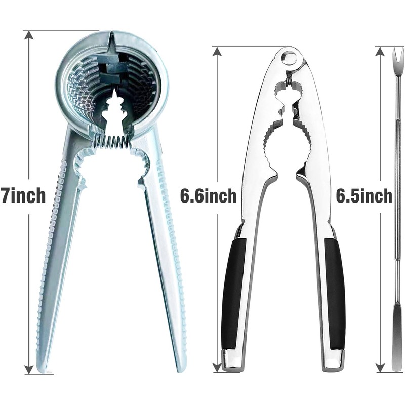 - Packing list: 1 nut cracker, 1 lobster crab cracker and 1 pick. Easy to crack nuts, hazelnuts, almonds, pecans, Brazil nuts, suitable for seafood shellfish, lobster, crab shells, oysters, and nuts.