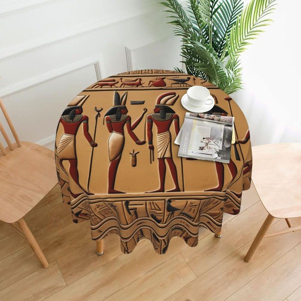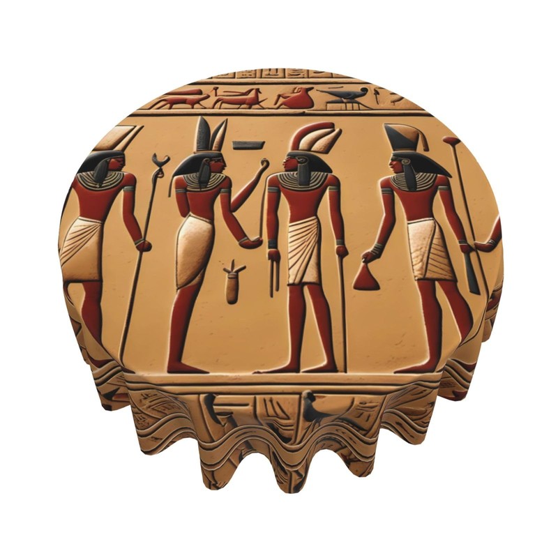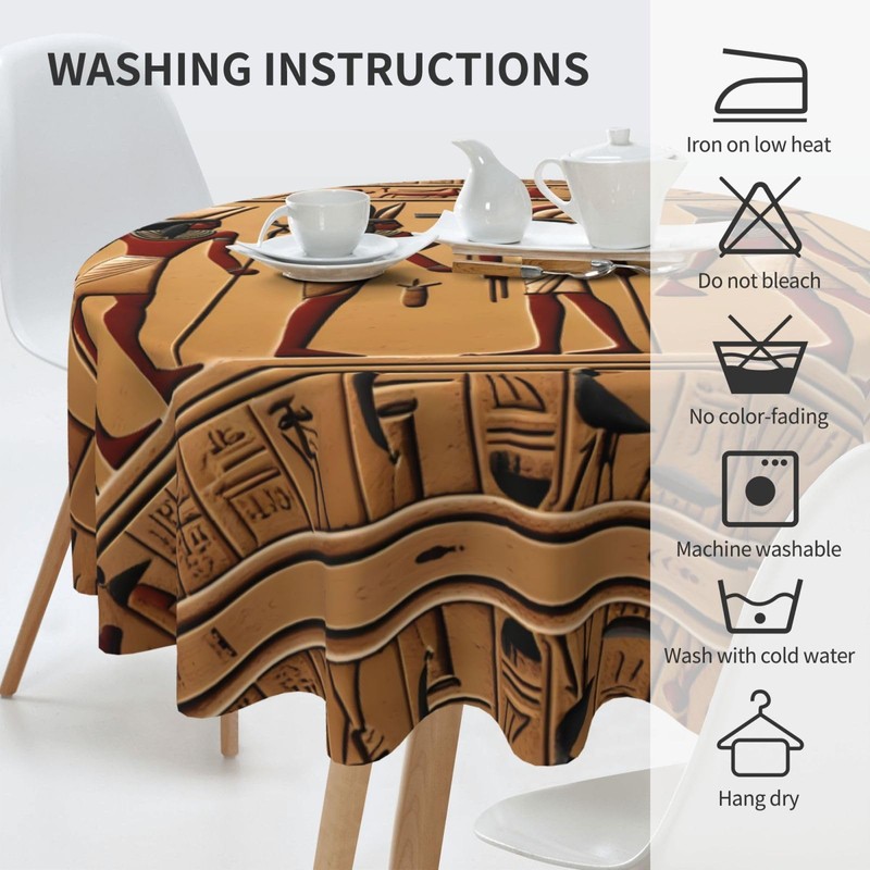 - WZYWHJ Ancient Egyptian Hieroglyph Printing Round decorative tablecloth product material : 100% polyester fiber Made of water-repellent fabric, it feels warm and soft, Quality, and can be washed and reused