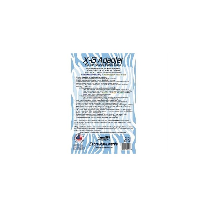 Easy to Use - Zebra Instruments X-13 and Evergreen Motor Adapters with DVD Instructions (for VZ-7). 2-Piece Adapter Set necessary to connect your VZ-7 to the new X-13 and Evergreen ECM (Variable Speed) Motors by General Electric..