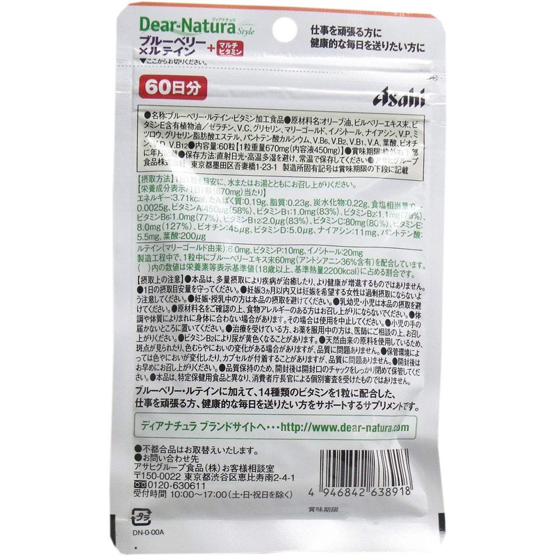 ディアナチュラスタイル ブルーベリー×ルテイン+マルチビタミン 60日分 60粒入 (3)