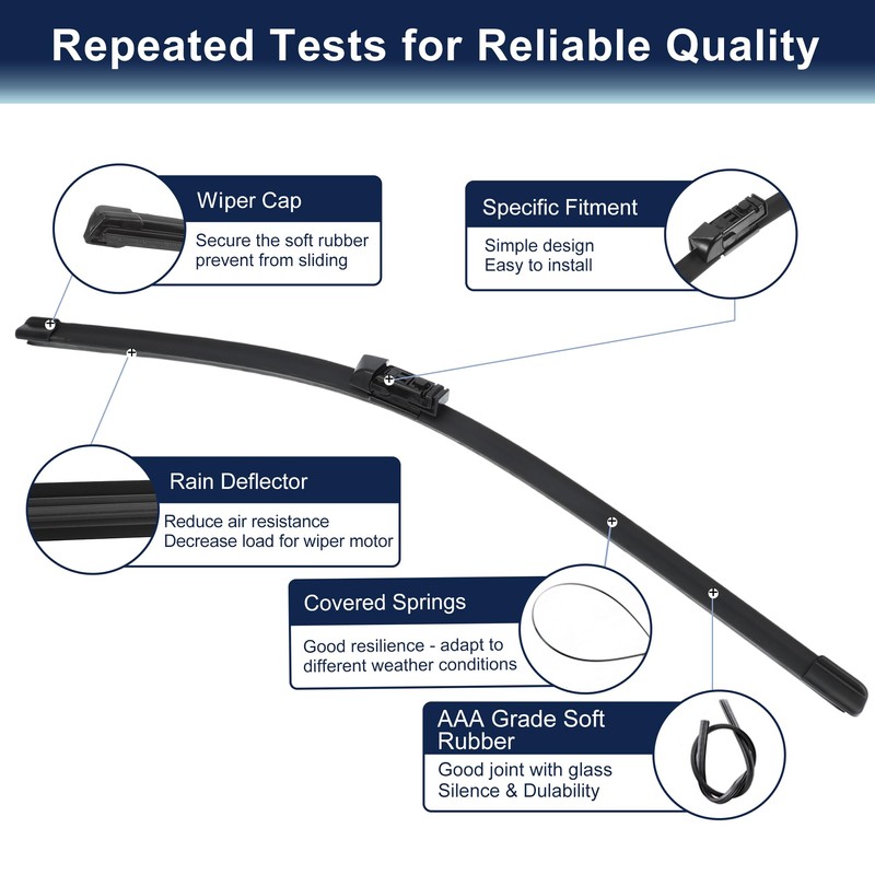 - [Satisfactory User Experience] Clear and streak-free visibility. Quiet without abnormal noises. For all seasons weather conditions to remove water, dirt or debris from your windshield. Totally enhance your driving experience.