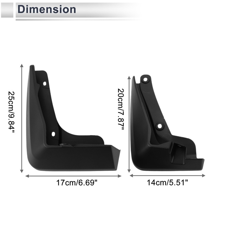 - Product Characteristics:Every mudguard is a good fit for your car. A remarkable fit is ensured by the design's ability to hug the contours of your vehicle like no other.
