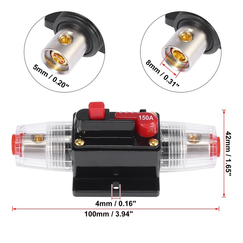 - Manual Reset Circuit Breaker: The circuit breaker can also be used as an on off button switch for the battery.