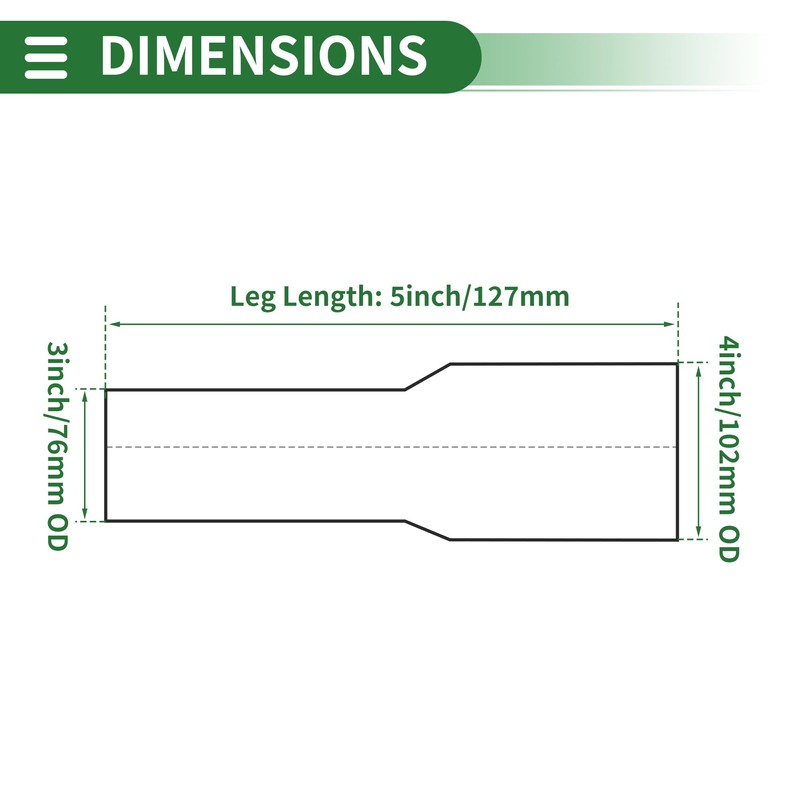 - Specification: Tube Design: Cutted Input Outside Diameter: 3inch/76mm Output Outside Diameter: 4inch/102mm Overall Length: 5inch/127mm