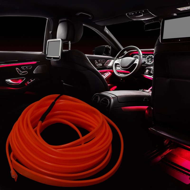 X AUTOHAUX 5 Meter/16ft Interior USB Neon EL Wire String Strip Orange Cold Light Glow String Strip Set for Car Decoration
