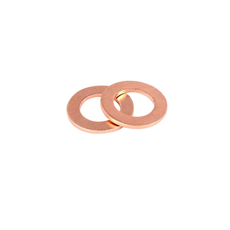 Copper flat washers are denser and more heat resistant than steel and rubber washers. Good electrical conductivity and thermal conductivity, non-magnetic. Washers are used to support and distribute the load on the bridge area of the bolt and nut to prevent pulling through. Special material ensures good results workmanship, smooth surface for perfect results. Strong and durable, ideal for outdoor applications, easy to install. Widely used in various environments with reference to hydraulic fittings, water, fuel and oil drain screws. Size: 12 x 20 x 1.5 mm / 0.47 x 0.79 x 0.06 inches (ID x OD x T). Package includes: