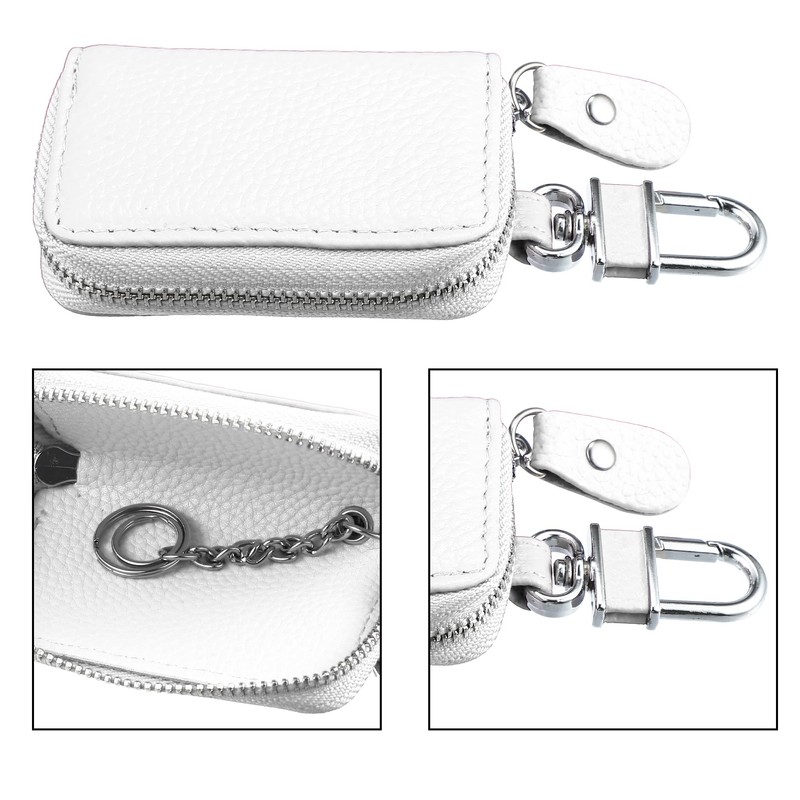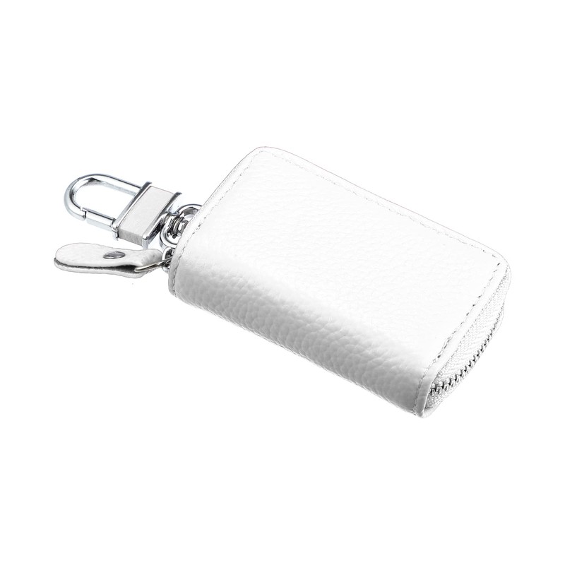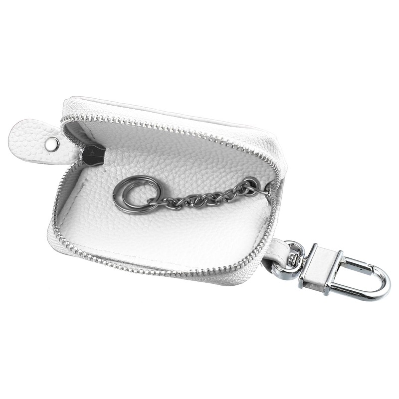 X AUTOHAUX Faux Leather Zipper Car Fob Key Case for Auto Remote Key White