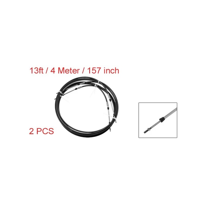 Description:Quality material. This cable is constructed out of a stainless steel core with a jacket.With durable material, it can be for low friction and reduced end play.Ensure sufficient bend radius for smooth easy shifting.Fits for Yamaha, for Honda, for Suzuki, for Nissan, for Tohatsu and for Chrysler outboard engines.(But not for Mercury.)Specification:Product Name: Marine Boat Throttle Shift Control CableCondition: Brand NewType: 3300/33CColor: BlackMaterial: Stainless Steel, RubberThread Size: M5x0.8Length: 13ft / 4 Meter / 157 inchNote:Please measure and compare the cable length and connector before ordering, especially the connector.Please allow 1-2cm error due to manual measurement.Installation Instructions:1. Please measure the cable routing path from the control head to the engine connection.2. Measure from the control end along with unobstructed routing to the outboard center.3. Allow an extra 4 feet for a loop to enable unrestricted movement.4. Most cables are measured on the foot. So round up to the next foot when you make your option.Package Include:2 x Throttle Control Cable