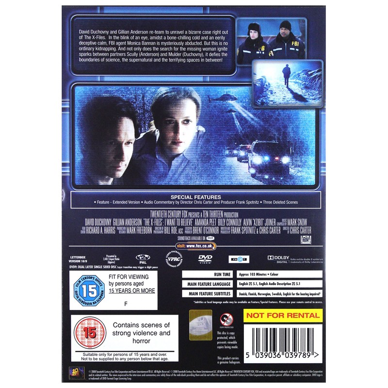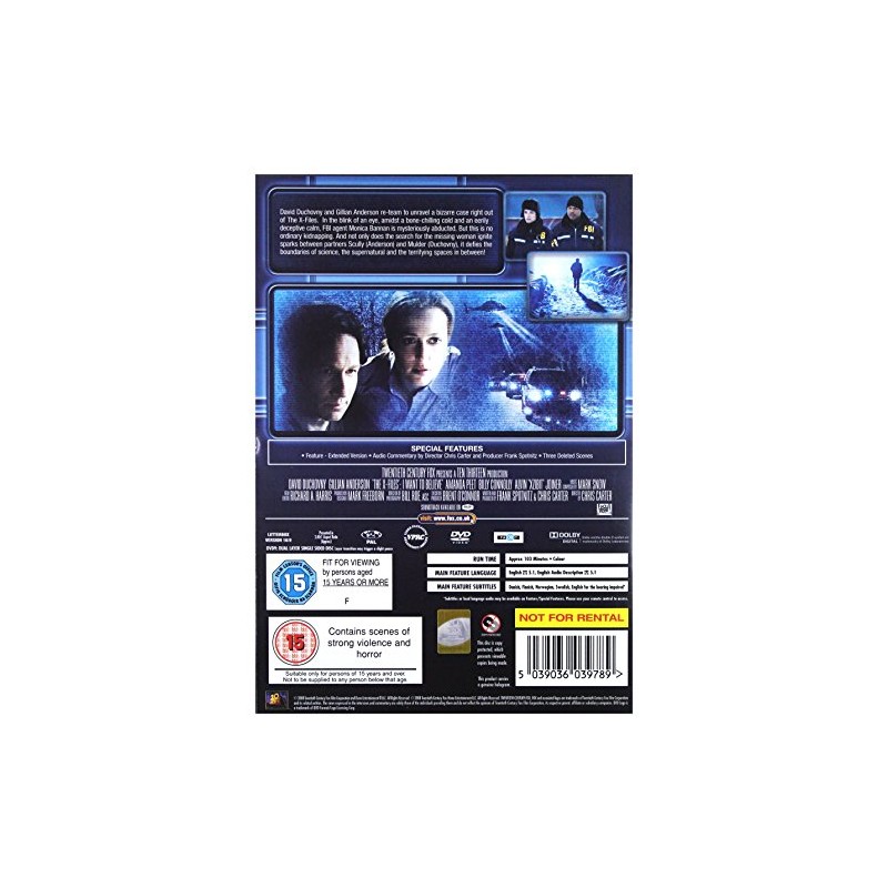 David Duchovny and Gillian Anderson reprise their roles as Agents Mulder and Scully in director Chris Carter's cut of this supernatural thriller. The film begins with the mysterious disappearance of a group of women in Virginia. The FBI calls Mulder and Scully back to duty to investigate and they are led to a priest, Father Joseph Crissman (Billy Connolly), who is having strange visions. Father Crissman's unusual apparitions subsequently lead Mulder and Scully to a bizarre secret medical experiment which may have a connection with the women's disappearance.