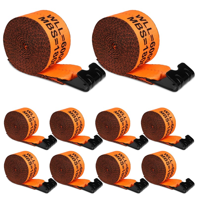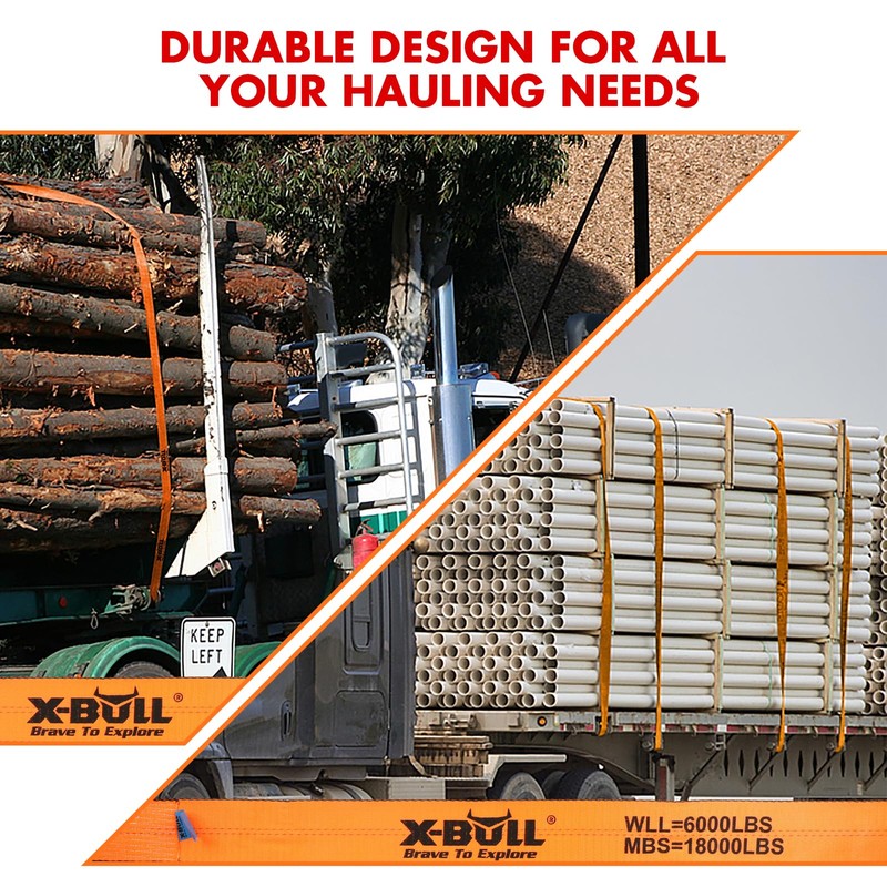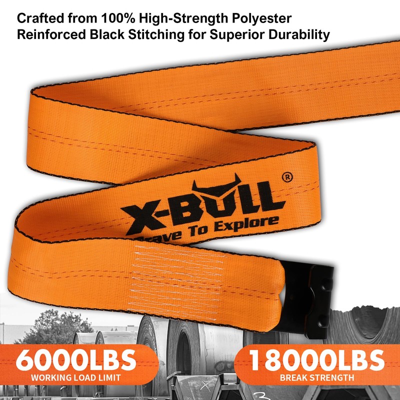 X-BULL 4" x30' Winch Straps, 18,000lbs Break Strength, 6000lbs WLL, Heavy Duty Cargo Flatbed Trailer Straps with Large Flat Hook for Flatbeds, Trucks, Tree Saver, Orange(10 Pack)