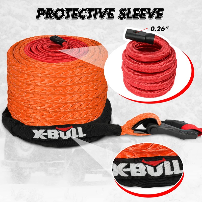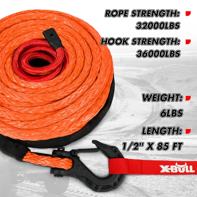 X-BULL Synthetic Winch Rope - Cable Kit -1/2" X 85ft 32000LBS Winch Line with Protective Sleeve Forged Winch Hook Safety Pull Strap go for 4WD Off Road Vehicle Truck SUV ATV UTV-Orange
