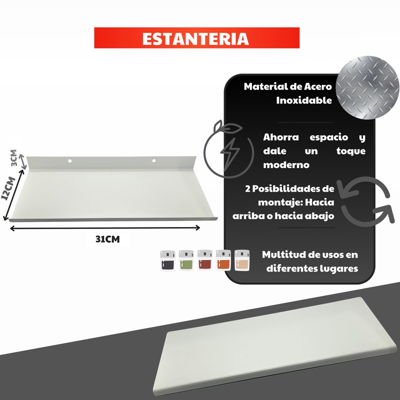 • Material and dimensions: shelf 28 x 14 x 3 cm made of SUS304 stainless steel, black and white lacquered. Thanks to the metal structure, they are sturdy and durable.