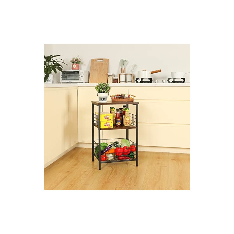 X-cosrack Side Table, Industrial Retro End Table Nightstand Storage Shelf for Living Room Bedroom Kitchen Family and Office,Small Table for Small Spaces(Rustic Brown & Black)