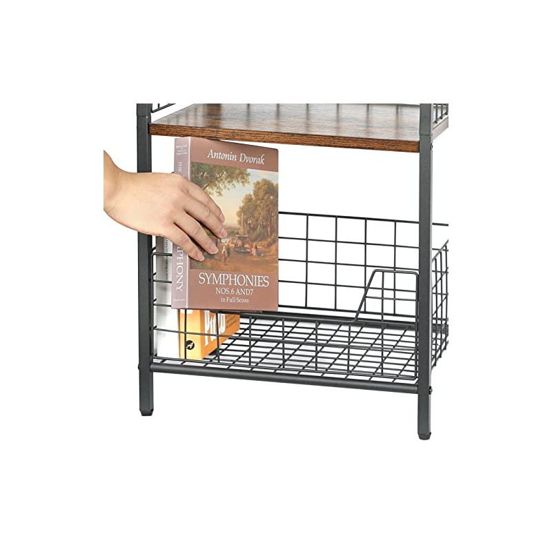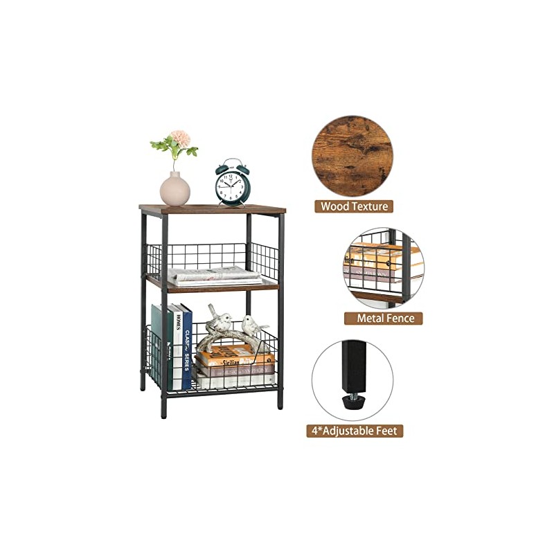 X-cosrack Side Table, Industrial Retro End Table Nightstand Storage Shelf for Living Room Bedroom Kitchen Family and Office,Small Table for Small Spaces(Rustic Brown & Black)