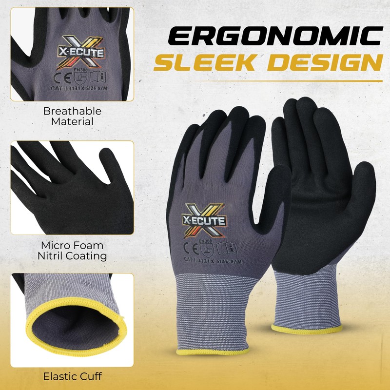 X-ECUTE GripFlex Pro 12 Pack Safety Gloves (Medium)