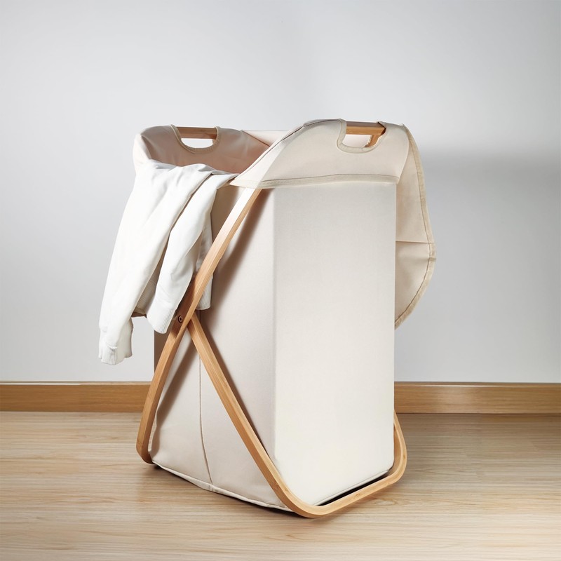X Frame Laundry Hamper Bamboo Wood Hamper with Lid for Laundry Collapsible Laundry Basket Foldable Storage for Household Beige,Portable,Dustproof, Large Capacity Home Storage Bin