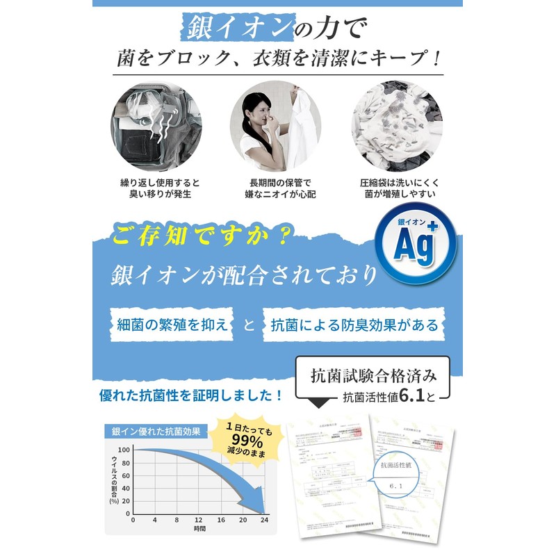 • 【抗菌効果99%|銀イオン配合で安心】銀イオンを配合した特殊素材を使用し、細菌の繁殖を最大99%抑制(第三者試験機関データ)。旅行中も下着やタオル類を清潔に保ちたい方に最適です。