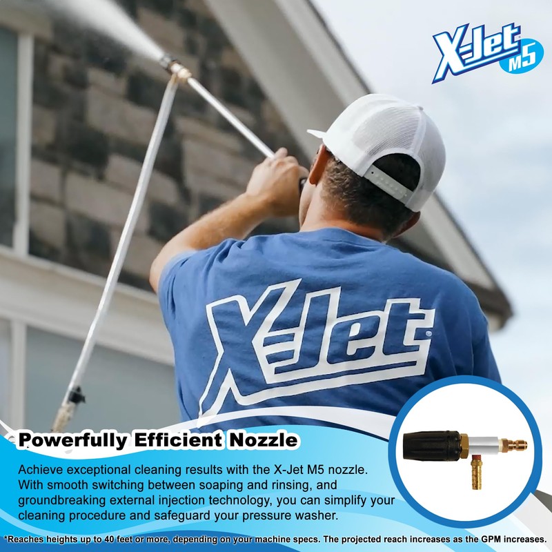 - Heightened Safety and Convenience: Clean hard-to-reach areas without the need for ladders or lifts using the X-Jet M5. Confidently tackle high surfaces with a reach of up to 40 feet or more based on your pressure washer's specifications.