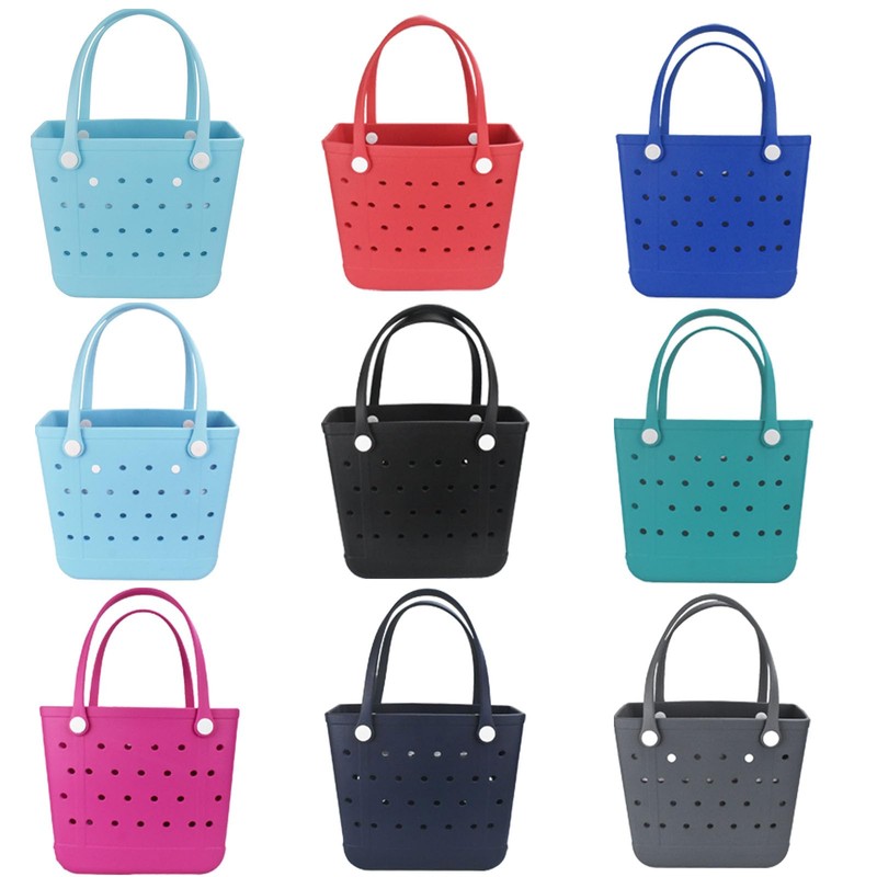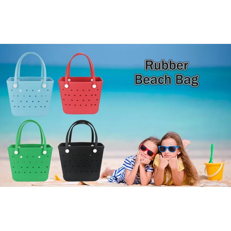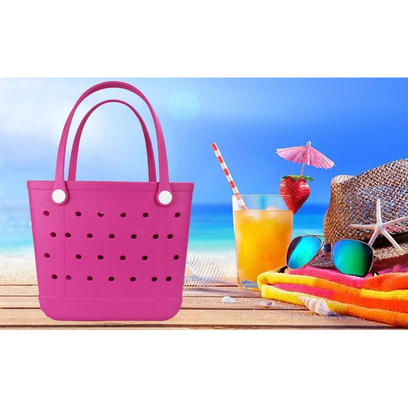 - EASY TO USE: The holes on the beach bag tote are about 10mm in diameter, so you can add your favorite decorative pendants. The rubber tote bag stands upright and will not fall over. The traction on the bottom of the beach bags prevents the rubber beach bag from slipping on wet surfaces.