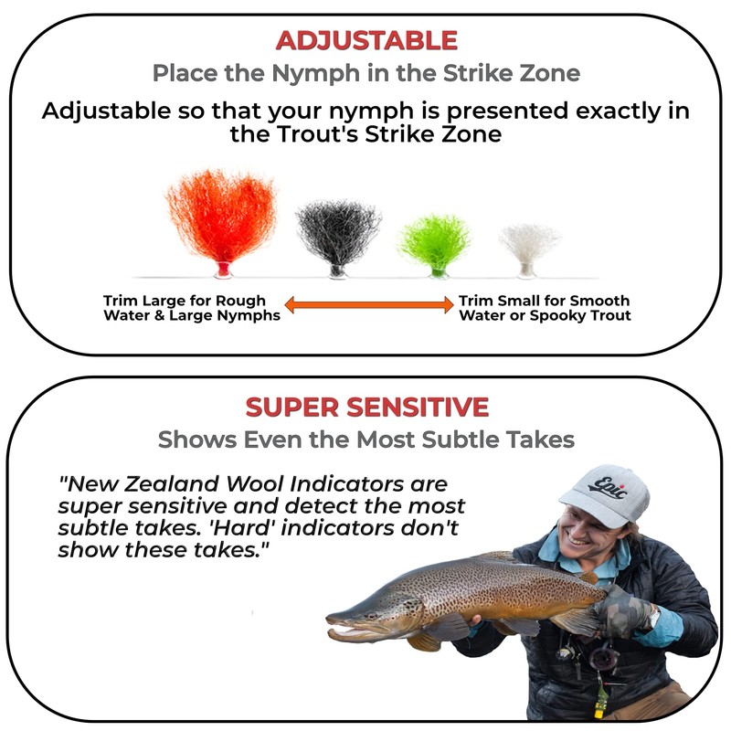 - GUIDE TIPS - It's a pleasure to cast a light and natural wool indicator - it casts like a dry fly! Guides are making multicolor indicators to improve sighting and detection of the slightest take. Once you have selected the best color(s) for your indicator - go ahead and trim it to the perfect length. At the end of your day - be sure to save the sleeve and wool indicator for your next trip.