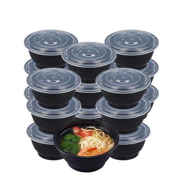 X PACK- 50 oz Meal Prep Bowl and Lid -Extra Thick (120 Pack)- Plastic Containers with with lid- best for Noodles, Ramen, Poke Bowl, Salad, Soup - Freezer, Microwave & Dishwasher safe