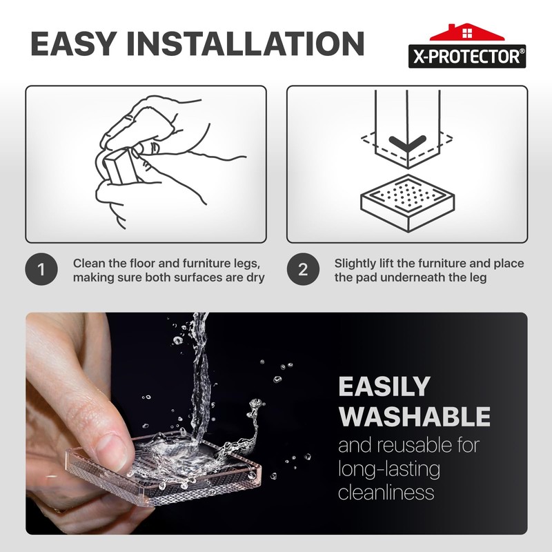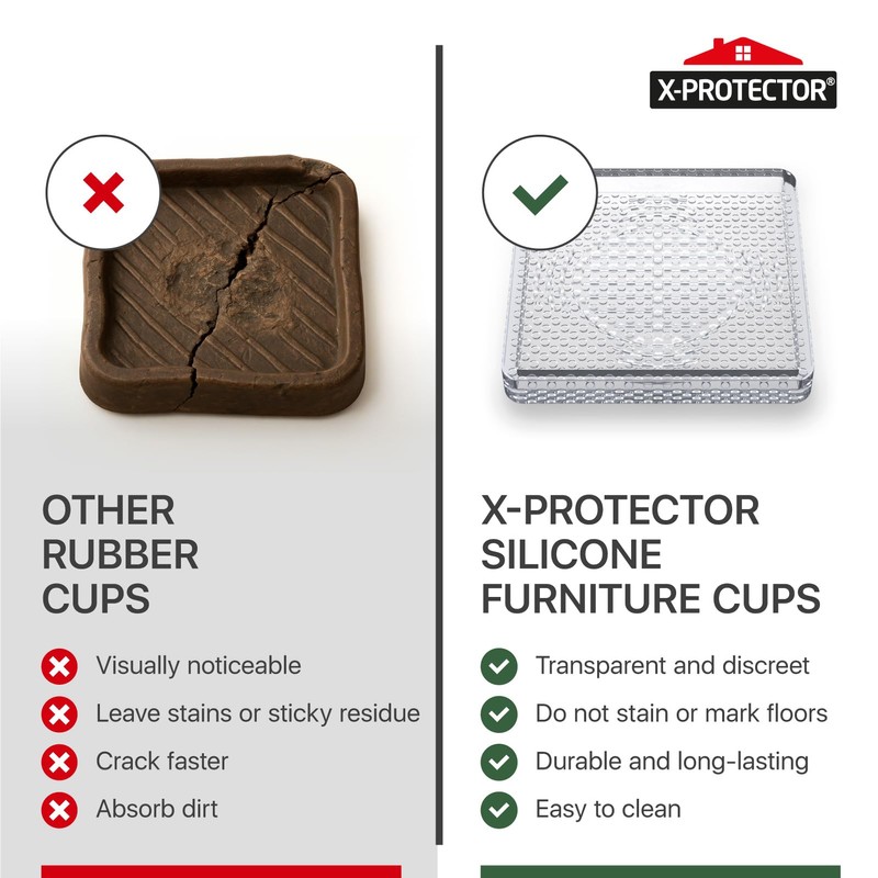- ✌️ Secure Grip Design - X-Protector furniture coasters feature a textured inner surface that grips furniture legs of any shape, while the bottom provides a non-slip base that keeps furniture stable!